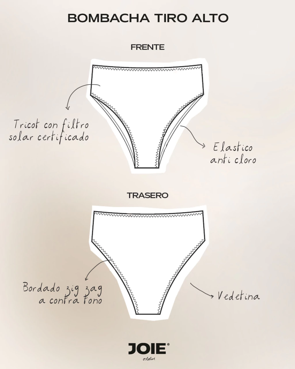 Bombacha tiro alto estampada con los prints más icónicos de Joie y confeccionado en tricot con filtro de protección UV+50. Posee un bordado zigzag. Los corpiños y bombachas se venden por separado.