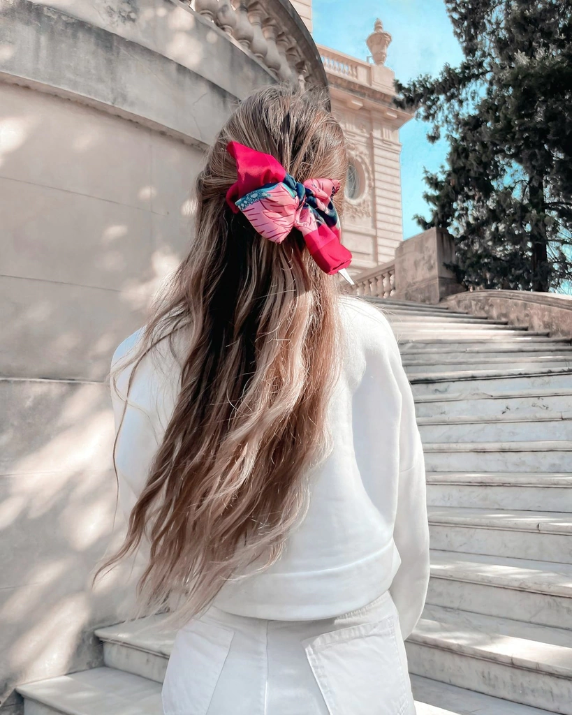 Nuestros accesorios para el pelo tanto scrunchies, moños como los turbantes son realizados con sobrantes de tela, para disminuir la cantidad de residuos colaborando con nuestro planeta.