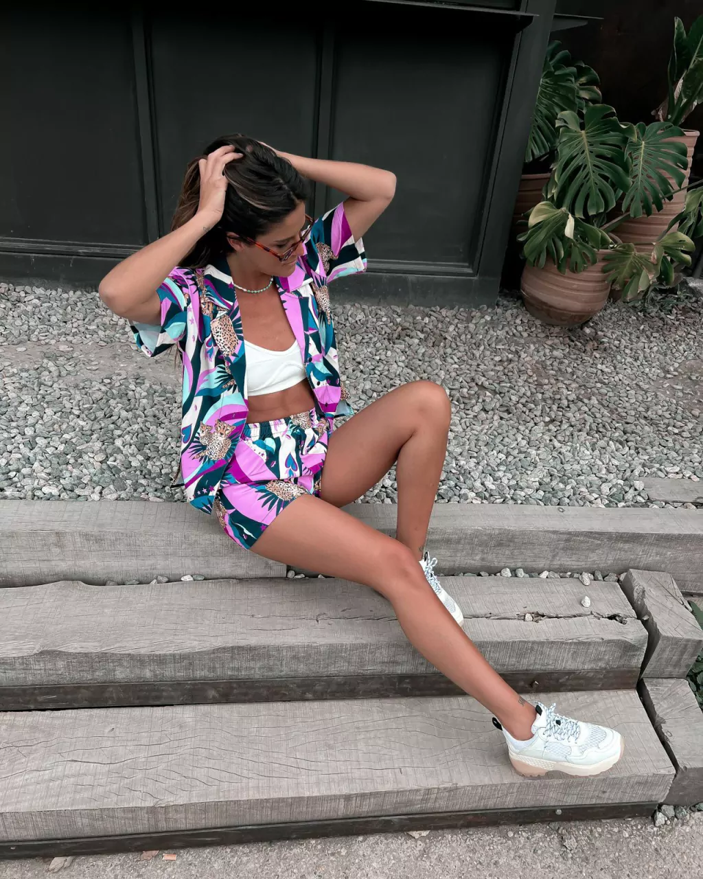 Podés usarlo en conjunto con la camisa del mismo print o con una camisa blanca, un body o top.